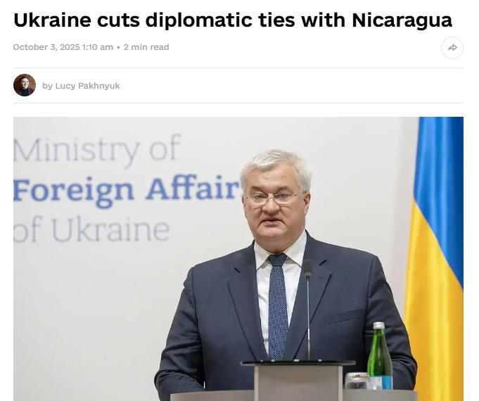乌克兰外交部:与尼加拉瓜断绝外交关系