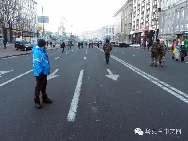 赫雷夏蒂克街上连接亲欧盟示威和反欧盟示威的“走廊”