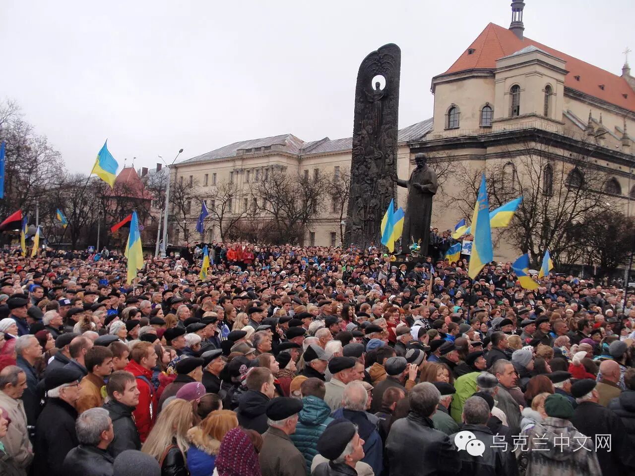 规模最大的抗议活动发生在利沃夫的塔拉斯·舍甫琴科纪念碑