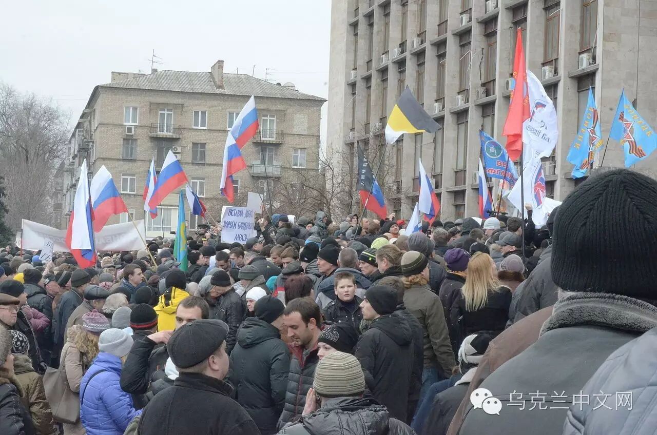顿涅茨克亲俄罗斯示威者当地行政大楼前示威