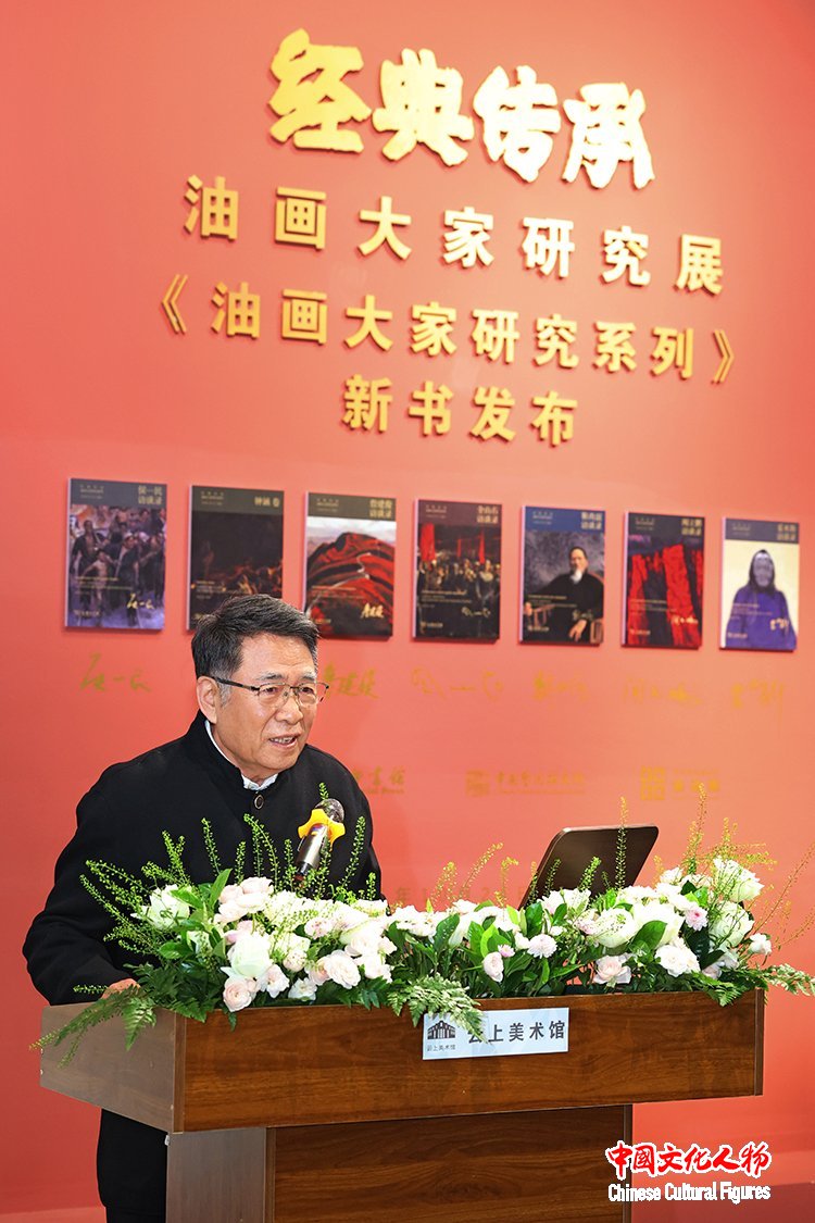 中国文化人物(主编 王保胜)11月1日,由中国艺术研究院和商务印书馆联合主办,中国艺术研究院油画院云上美术馆和商务印书馆太原分馆承办的“经典传承·油画大家研究展”开幕式暨《经典传承·油画大家研究系列》新书发布会在云上油画博物馆举行。原文化部副部长王文章,中央美术学院原院长靳尚谊,中央美术学院院长林茂,商务印书馆副总编辑李霞,商务印书馆太原分馆总编辑张艳丽,中国艺术研究院油画院名誉院长杨飞云,港澳台美协主席蔡豪杰,中国艺术研究院文献馆馆长郑光旭,河北美术学院理事长张丽,浙江全山石艺术中心副馆长魏新燕,全山石艺术中心宣传部主任王文杰,中国国家画院油画所所长赵培智,河北美术学院造型学院院长姜兴达,河北美术学院造型学院副院长杜琛,中国艺术研究院培训中心主任刘波,中国艺术研究院雕塑院常务院长郅敏,首都师范大学美术馆策展部主任范明正,中体建国集团董事长吴永生,上海俊柔服装设计创始人许少菱,杭州俊之柔服饰设计总经理许雪蓉,璀璨聚星文化集团董事长王国胜,时代金港集团联席总裁刘国,中国圆明园学会理事李欣,中数投资(成都)总经理柴红,中国国贸物业集团市场总监陶领,汇能创投执行董事张勇,以及姜国宁、朱源洪、董一沙、谢东明、孙立新、朱青生、吴宁、刘建平、龙力游、孙纲、林森、刘小东、喻红、胡西丹、侯珊瑚、詹滢、钟粟、仲伟生、马刚、马琳、张义波、白晓刚、叶楠、李荣林、康蕾、裴咏梅、张立农、贠红霞、徐冬青、刘庆军、李欣阳、郭恬、刘博阳、张海磊、马晨桓、薛亚娟、孙文刚、徐晓东、韩洪伟、黄胜贤、赵艳婷、谢意、许珂、石婷婷等前辈画家的亲属、艺术家、学者和社会各界嘉宾出席。中央美术学院院长林茂、中央美术学院原院长靳尚谊、中国艺术研究院油画院名誉院长杨飞云、港澳台美协主席蔡豪杰等先后致辞,商务印书馆副总编辑李霞致辞并宣布《经典传承·油画大家研究系列》丛书新书正式发布,原文化部副部长王文章宣布“经典传承・油画大家研究展”开幕。中国艺术研究院油画院院长朱春林主持。