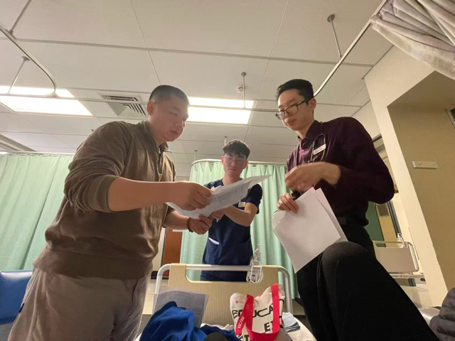 很快我的主治医生彼特先生( Dr Peter McLeod )前来给我会诊,他带着两位实习医生和护士,非常认真地听着实习医生介绍我的病情,并且详细的询问我目前的状况。
