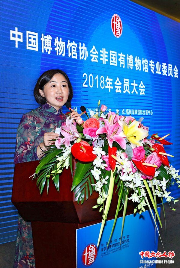 中国文化人物(主编 王保胜)为贯彻落实中共中央办公厅、国务院办公厅《关于加强文物保护利用改革的若干意见》,激发非国有博物馆创新发展活力,促进文物市场活跃有序健康发展,根据《中国博物馆协会非国有博物馆专业委员会管理办法》,11月22日,中国博物馆协会非国有博物馆专业委员会(简称“专委会”)2018年会员大会在福建福州成功举办。国家文物局副局长关强,国家文物局博物馆与社会文物司司长罗静,中国博物馆协会秘书长安来顺,中国博物馆协会非国有博物馆专业委员会秘书长王勇,以及国家文物局博物馆处处长何晓雷、陕西省历史博物馆馆长强跃、中国文物报社社长李耀申、福建省文物局副局长谢平、陕西省博物馆协会理事长侯宁彬、福建省文物局博物馆处处长陈方昌、四川省文物局博物馆处处长李蓓、河北省文物局博物馆处处长李宝才、江西省文物局博物馆处处长刘昌兵、江苏省文物局博物馆处处长车宁、河南省文物局博物馆处处长康国义、广东省文物局博物馆处副处长刘丽团、郑州市文物局副局长任晓红、郑州市文物局博物馆处处长李喜明、淄博市文物局副局长于崇远、西安市文物局博物馆处处长郭治华、四川省文物局博物馆处许小群、湖北省文物局博物馆处孙立、苏州市吴江区文广新局凌芸、山东博物馆副馆长卢朝辉、西安博物院副院长王梅、西安半坡博物馆馆长张礼智、郑州市博物馆馆长张霆等全国各地文物部门领导和24个省区市的非国有博物馆馆长、代表、文化学者近600人出席会议。中国博物馆协会非国有博物馆专业委员会秘书长王勇向大会作了专委会2018年度工作报告。国家文物局副局长关强、中国博物馆协会秘书长安来顺分别致辞。中国博物馆协会非国有博物馆专业委员会副主任、北京观复博物馆副馆长李瑄主持大会。