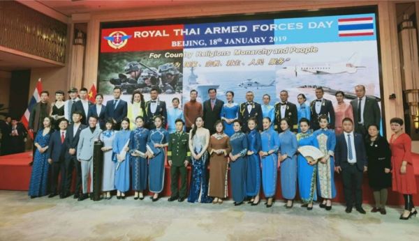 中国人民解放军国防大学副校长肖天亮中将、海军参谋长助理吴栋柱少将、空军指挥学院副院长安鹏少将、陆军参谋长助理董晓波大校、军委军合办亚洲局副局长刘芳大校,以及各国驻华大使馆武官代表等贵宾纷纷到场祝贺泰王国武装部队建军节在北京举办盛大庆祝晚会。