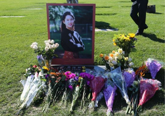 在结束美国的采访前,我特地留出时间,前往加州洛斯盖多,到张纯如的墓前拜祭。她就长眠在那里景色最美的一片青山里,墓园的名字叫做“天堂之门”(Gate of Heaven)。墓碑上的照片,张纯如笑意盈盈。碑上用中英文分别刻了她的名字:张纯如、Iris Chang。在名字的下方,镌刻着这样一段话:“挚爱的妻和母亲,作家和历史学家,人权斗士。”
