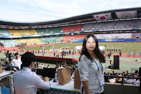 这和平的铿锵之声通过英语、法语、西班牙语、华语等八种语言同声翻译向世界直播,和平的狂潮至此席卷六大洲五大洋。此刻,韩国奥林匹克体育场成了世界和平的中心,全世界的目光都聚集在这里,聆听从这里发出的和平集结号。在欢乐的海洋中,和平的种子种植于万众之心,开枝散叶,生根发芽。