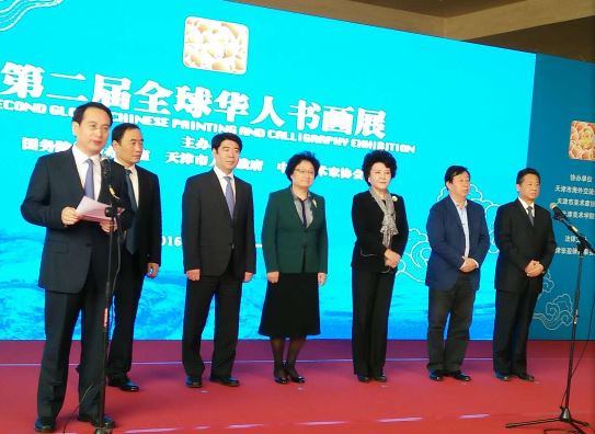 由国务院侨务办公室、天津市人民政府和中国美术家协会共同主办的“第二届全球华人书画展”11日在天津美术馆开幕。