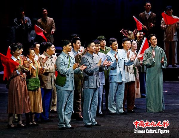 剧终,著名男高音歌唱家王宏伟、青年女高音龚爽、男中音歌唱家张海庆等主要演员向观众致谢