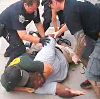 中新网7月20日电 据香港《文汇报》20日报道,美国纽约市斯塔滕岛街头警员日前拘捕一名怀疑贩卖私烟的黑人男子时,一名警员向对方施展“锁喉”技术,另有最少4名警员上前将该名男子按在地上,即使他不断呼喊“不能呼吸”仍不加理会,导致他心脏病发死亡。