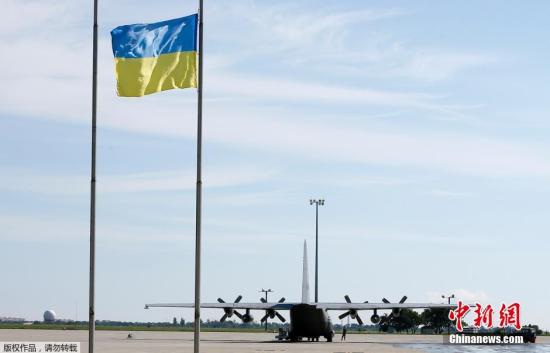 当地时间7月23日,乌克兰哈尔科夫机场一架飞机等待装运MH17坠机遇难者遗体,前往荷兰。
