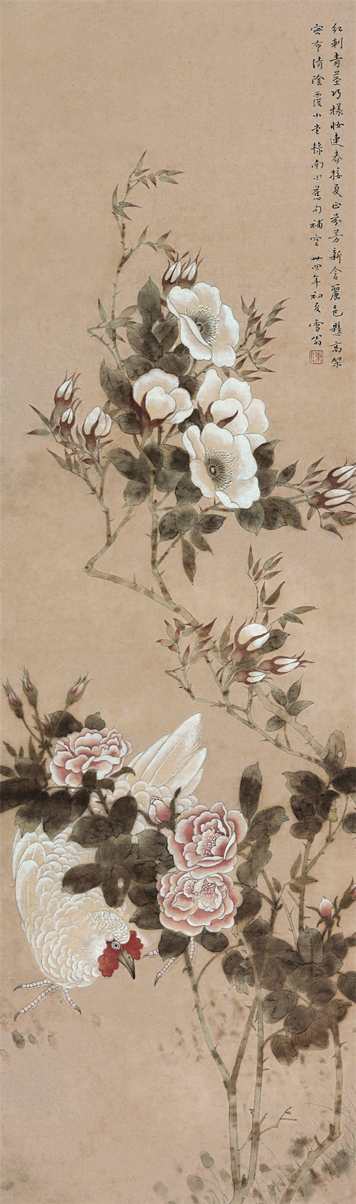 款识:春风得意。岁次乙亥重阳节后。本唐解元赋色。刘奎龄。