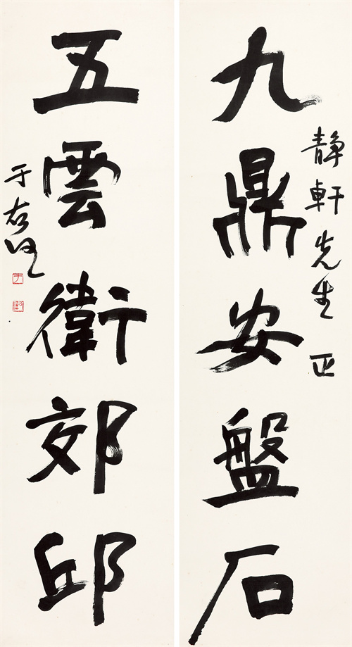 款识:苹臣先生清鉴。释文「骕骦迈群冀北马;牡丹称盛洛阳花」十四字。黄山宾虹散人集金文。