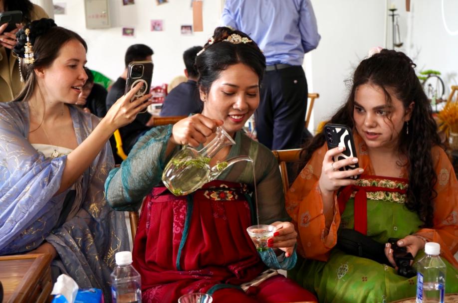 大家还现场品尝春茶的滋味,在品茗时光中,不同文化背景的参与者们交流着对茶文化的理解与感悟,感受中国茶文化的源远流长和博大精深。