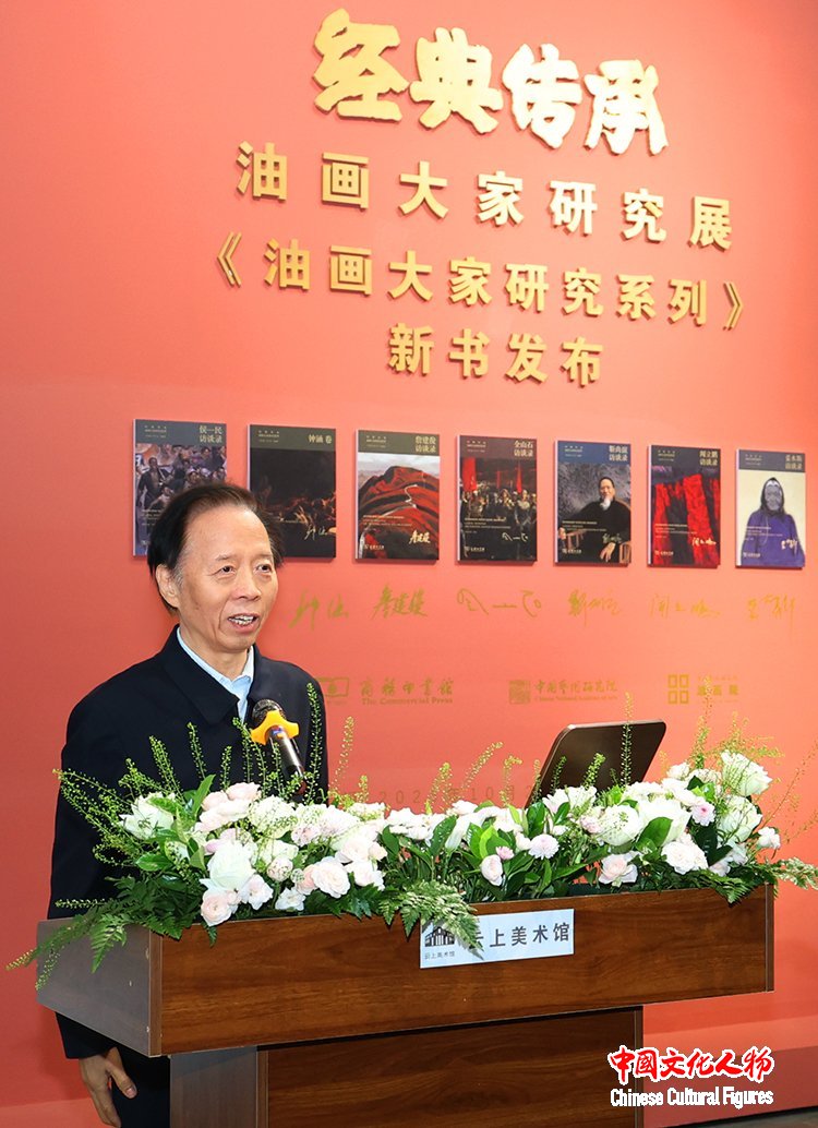 中国文化人物(主编 王保胜)11月1日,由中国艺术研究院和商务印书馆联合主办,中国艺术研究院油画院云上美术馆和商务印书馆太原分馆承办的“经典传承·油画大家研究展”开幕式暨《经典传承·油画大家研究系列》新书发布会在云上油画博物馆举行。原文化部副部长王文章,中央美术学院原院长靳尚谊,中央美术学院院长林茂,商务印书馆副总编辑李霞,商务印书馆太原分馆总编辑张艳丽,中国艺术研究院油画院名誉院长杨飞云,港澳台美协主席蔡豪杰,中国艺术研究院文献馆馆长郑光旭,河北美术学院理事长张丽,浙江全山石艺术中心副馆长魏新燕,全山石艺术中心宣传部主任王文杰,中国国家画院油画所所长赵培智,河北美术学院造型学院院长姜兴达,河北美术学院造型学院副院长杜琛,中国艺术研究院培训中心主任刘波,中国艺术研究院雕塑院常务院长郅敏,首都师范大学美术馆策展部主任范明正,中体建国集团董事长吴永生,上海俊柔服装设计创始人许少菱,杭州俊之柔服饰设计总经理许雪蓉,璀璨聚星文化集团董事长王国胜,时代金港集团联席总裁刘国,中国圆明园学会理事李欣,中数投资(成都)总经理柴红,中国国贸物业集团市场总监陶领,汇能创投执行董事张勇,以及姜国宁、朱源洪、董一沙、谢东明、孙立新、朱青生、吴宁、刘建平、龙力游、孙纲、林森、刘小东、喻红、胡西丹、侯珊瑚、詹滢、钟粟、仲伟生、马刚、马琳、张义波、白晓刚、叶楠、李荣林、康蕾、裴咏梅、张立农、贠红霞、徐冬青、刘庆军、李欣阳、郭恬、刘博阳、张海磊、马晨桓、薛亚娟、孙文刚、徐晓东、韩洪伟、黄胜贤、赵艳婷、谢意、许珂、石婷婷等前辈画家的亲属、艺术家、学者和社会各界嘉宾出席。中央美术学院院长林茂、中央美术学院原院长靳尚谊、中国艺术研究院油画院名誉院长杨飞云、港澳台美协主席蔡豪杰等先后致辞,商务印书馆副总编辑李霞致辞并宣布《经典传承·油画大家研究系列》丛书新书正式发布,原文化部副部长王文章宣布“经典传承・油画大家研究展”开幕。中国艺术研究院油画院院长朱春林主持。